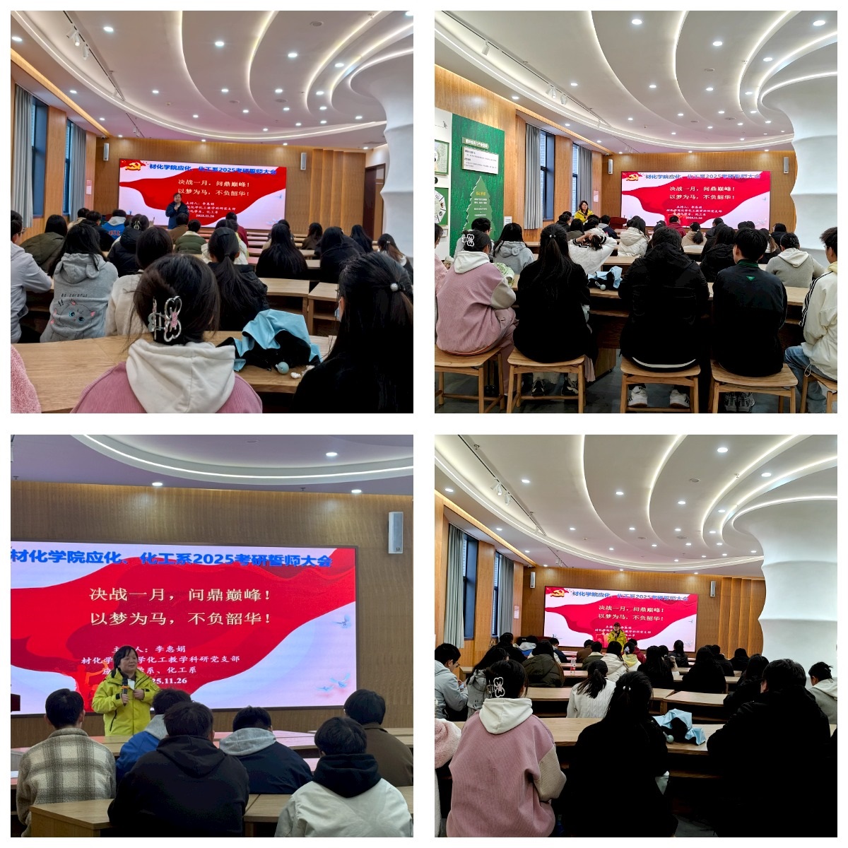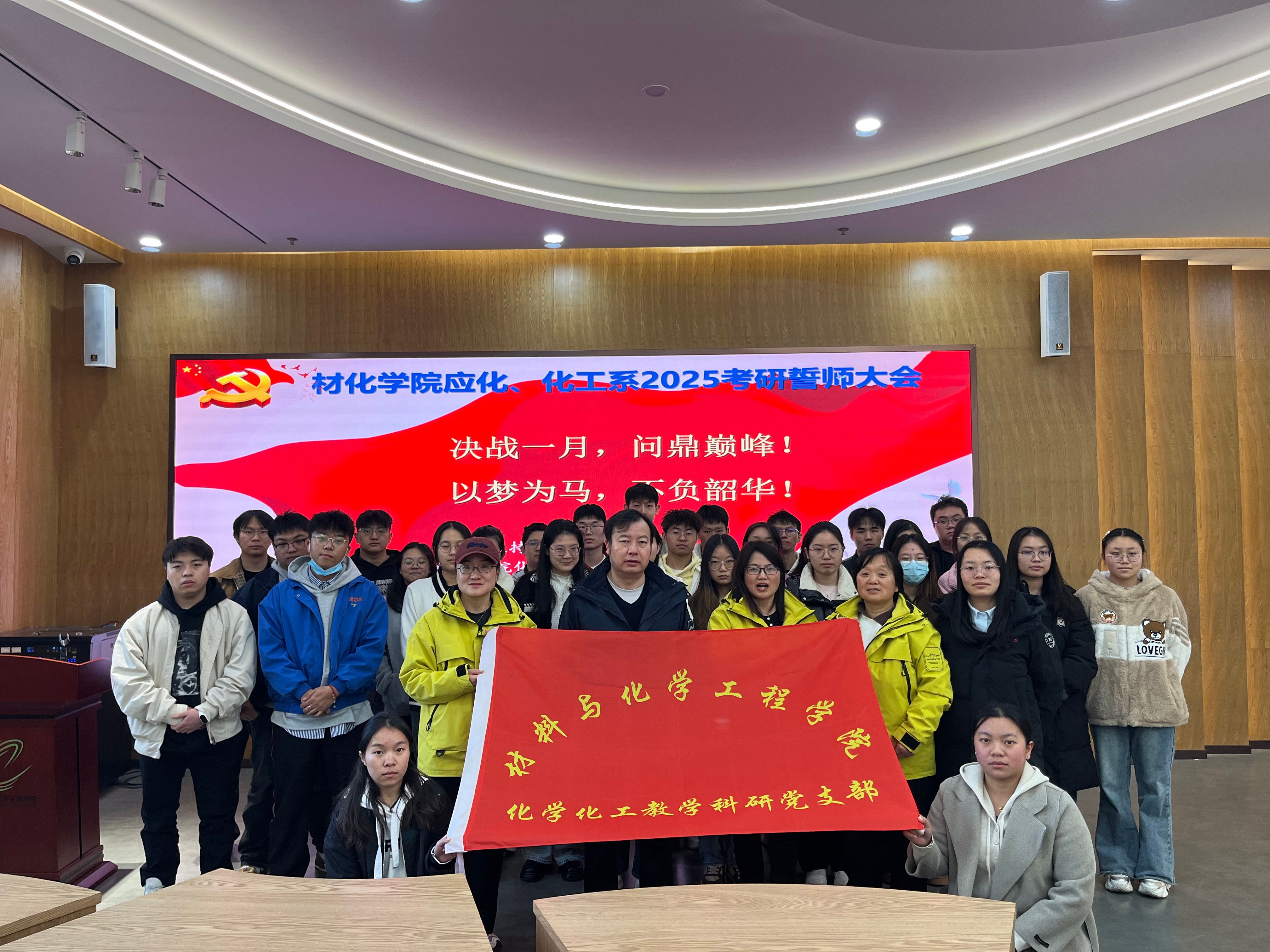 2025年11月26日上午,材料与化学工程学院化学化工教学科研党支部于木竹博物馆会议室召开“应用化学与化学工程专业考研誓师大会”主题党日活动。学院院长李向红、党委副书记熊春梅、支部党员、班主任代表以及应化22级、化工22级备考学生参加活动。
